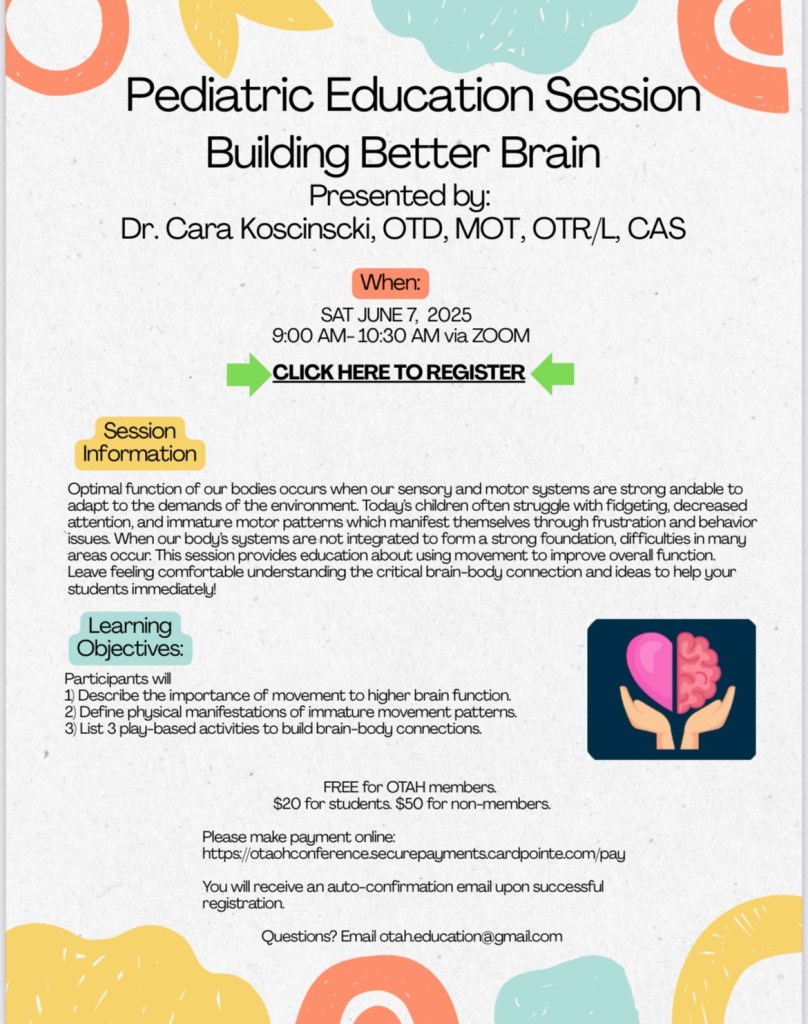 Join us for a Pediatric Continuing Education class Building a Better Brain on June 7 from 9-10:30 via Zoom.